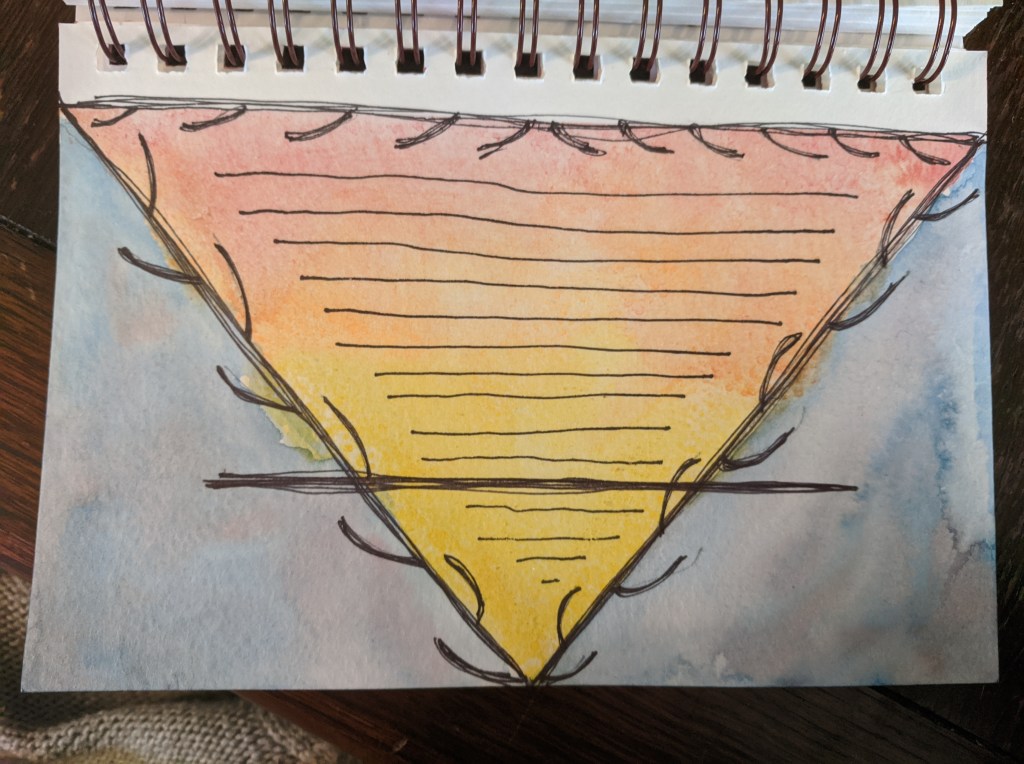 the triangle with the line is symbolic of the earth. the colors are of the skies and it is framed in the bare branches. i have lines for journaling, which i did after i took the photos.