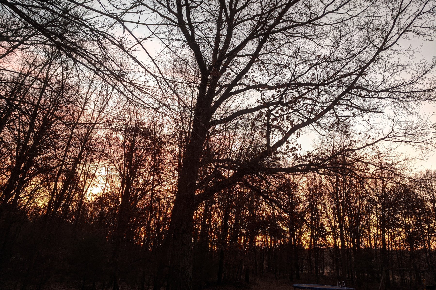 the first journey into art is the rising of the morning sun. here in Michigan the trees are bare of their leaves. the view usually block by green foliage is now visible. the structure, shape, form of the tree branches bared against the fiery skies.