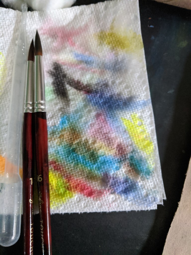 So here is day 8!! YAY!! this is an idea i got from the Virtual Art Summit with Kellee Wynne. i love this project (not very good at it yet. practice makes perfect!). Melissa Doty’s circle art is GORGEOUS. if you know me you know that i love circles, spirals, mandalas. i also love color, the way watercolor loves to mix and mingle. i am still learning how to control watercolor on paper so precisely. this project takes precision and control (who knew painting circles could be such a challenge!?!) but that challenge and concentrate really did help to calm my mind, giving it something to concentration. it’s fun to play with all the colors too. This is one of my new favorite things. this is definitely one of those exercises that i will use on my journey.