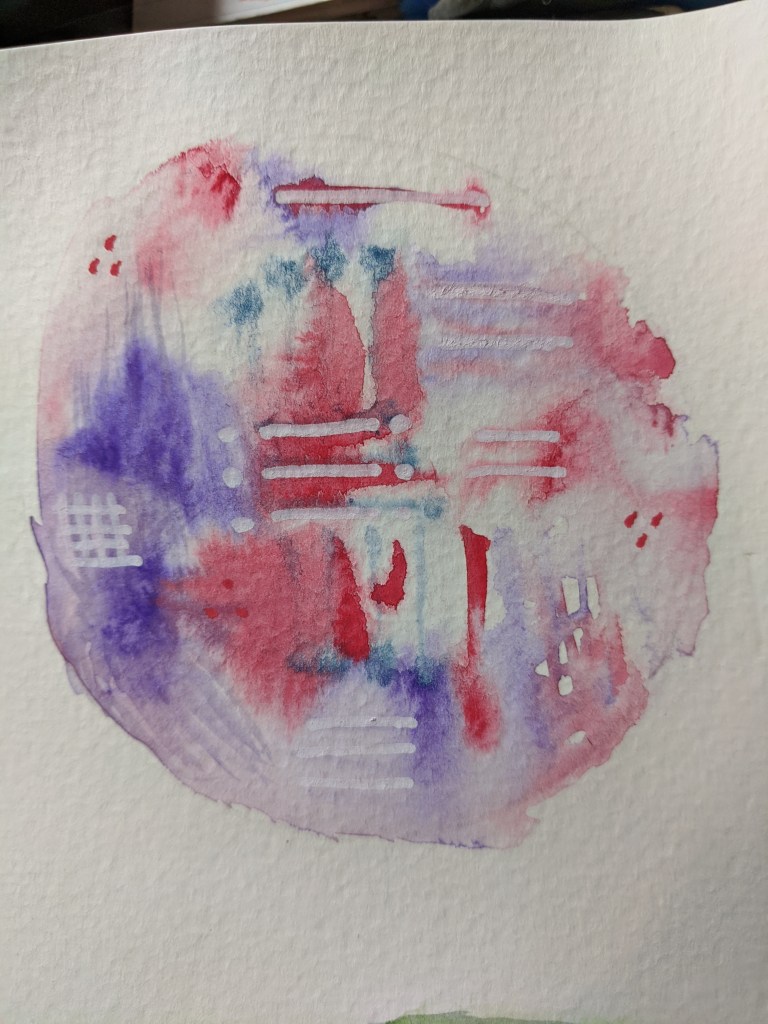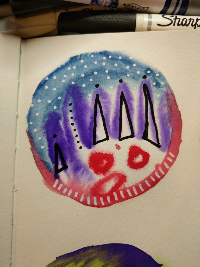 I had a lot of fun making these circles. it gave me some practice with mixing and bleeding and blending colors PLUS a little doodle work when they were dry….i have a feeling there will be plenty more of these filling up my art journal.